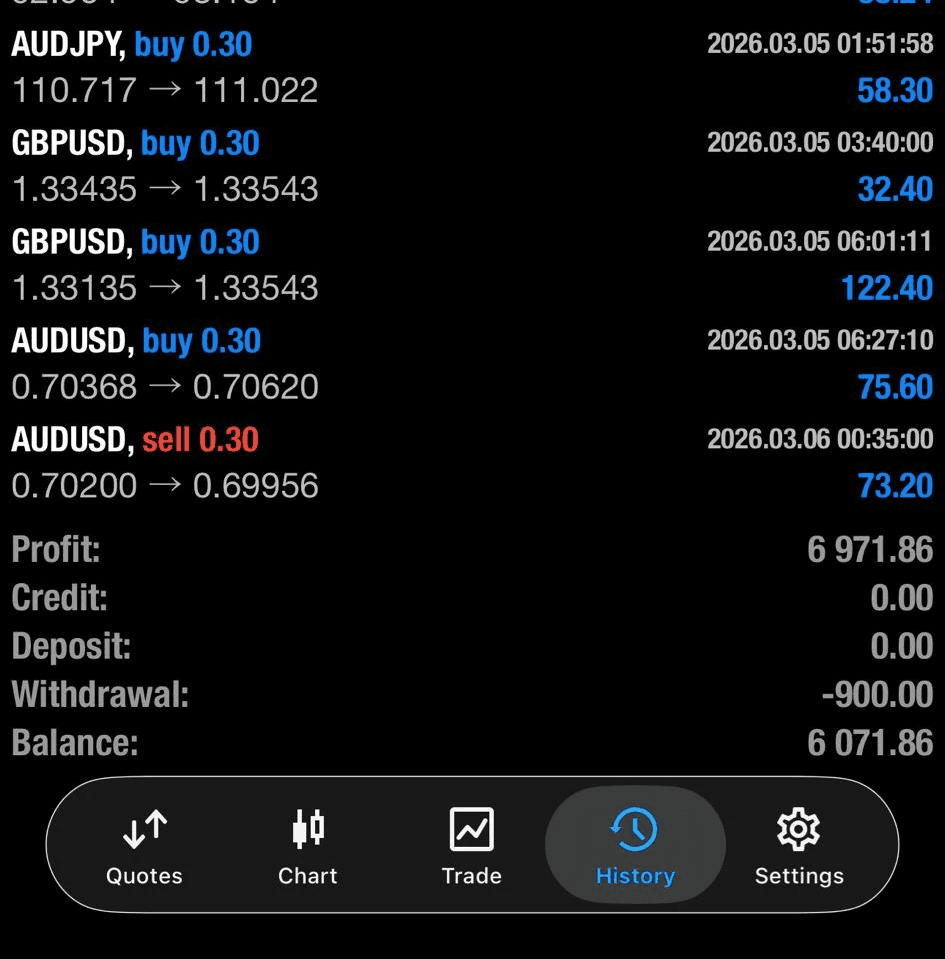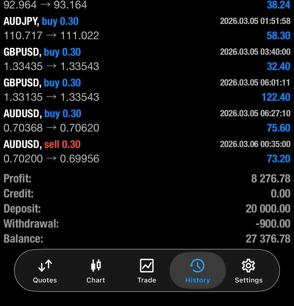 I have manually traded before and just made loss after loss. Ever since the bot was placed on my MT5, it was just profits all the way. Win rate is decent and %gain monthly is pretty good considering the bot doesn't need to be turned on or off.